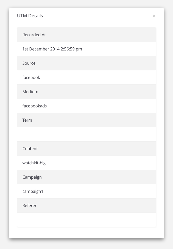 Clicking “more info” will show all UTM parameters and allow you to identify the specific campaign attributed to this subscriber.