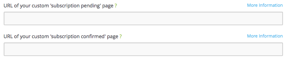 If you have double opt-in enabled, you can also set up a custom page to show people just after they have entered their email address. This page should contain a message asking your new subscriber to check their inbox for a confirmation message.