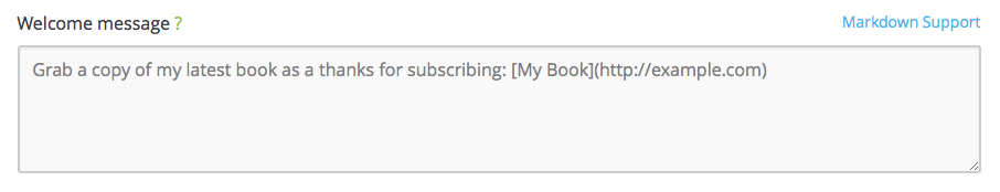 To add you own welcome message each time a new subscriber signs up to your publication, simply write your message in the text field: