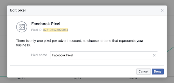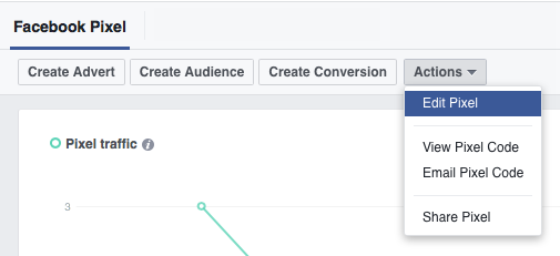 When you have created your Facebook Pixel, find your pixel ID by clicking ‘Edit Pixel’:
